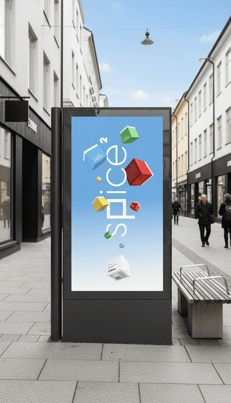 Spice² is a conceptual sub-brand of Spicemaster, featuring premium dry spices in 5x5 cm modular cubes made from a single piece of recycled cardboard. By deconstructing the Spicemaster identity and using "boxy" variable typography, the project challenges traditional eco-friendly branding through a premium yet playful visual language. Each cube is branded with the slogan "Square equals fair," reinforcing a commitment to both geometry and sustainability. Supported by AI-generated mockups and physical prototypes, the design showcases a stackable, plastic-free system.